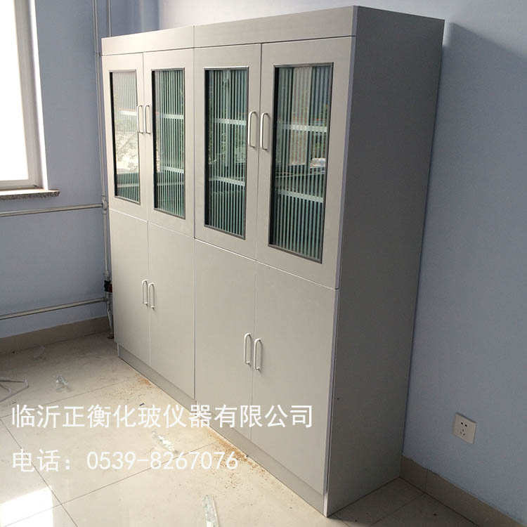 1藥品柜柜體:側板、頂板、底板采用18mm優質三聚氰胺板,經PVC 防水封邊處理。藥品柜層板采用優質中密度板,經2mm厚PVC防水封邊,防酸堿、乃腐蝕性能好。所有層板高度均可調。試劑柜層板采用6mm 厚的Campact 板,加強層板的承重性能,層板開孔分別為Φ30mm 、Φ50mm 、Φ70mm 、Φ100mm 四種規格。
